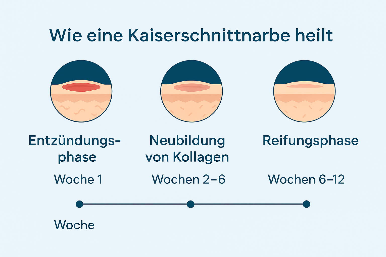 Nach einem Kaiserschnitt beginnt für deinen Körper echte Präzisionsarbeit. Die Haut, das darunterliegende Gewebe und die Muskulatur müssen sich Schritt für Schritt regenerieren. In den ersten Tagen nach der Operation läuft die sogenannte Entzündungsphase – die Haut ist gerötet, empfindlich und kann leicht spannen. Das ist völlig normal: Dein Körper baut abgestorbene Zellen ab und bereitet die Wundheilung vor.